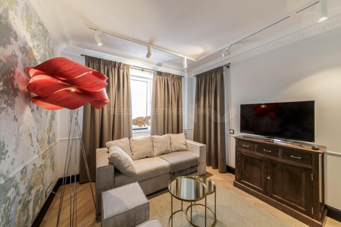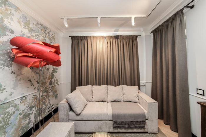 В новом выпуске «Квартирного вопроса» появилось стильное сочетание классического оформления с лепными элементами и индустриальными предметами декора. В легком и гармоничном проекте разместились две зоны - столовая и гостиная. Оконное пространство оформлено тканями Espocada из коллекций «Blackout» и «Weekend».