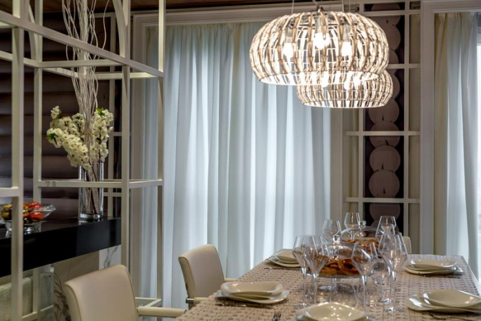 В богатом деталями интерьере блистают ткани Espocada из коллекций Sheers и Shamrock. С их помощью дизайнеры оформили окона и придали им легкость и объем. Мягкие идеальные складки прекрасно гармонируют с изысканным декором комнаты.
