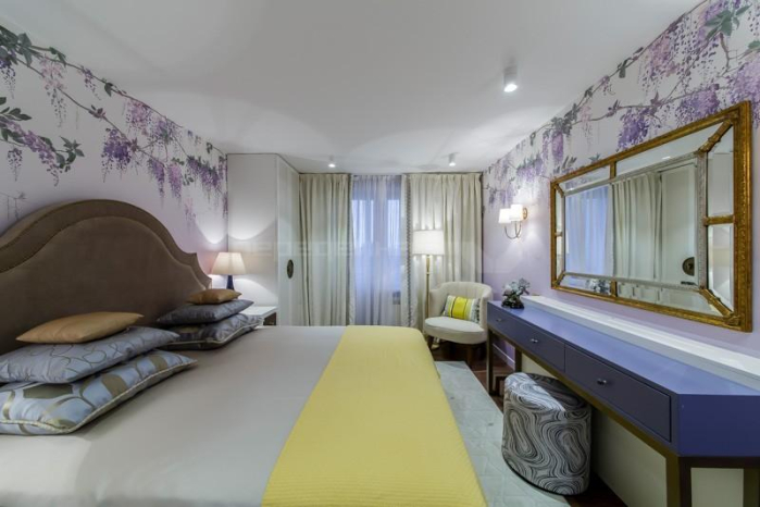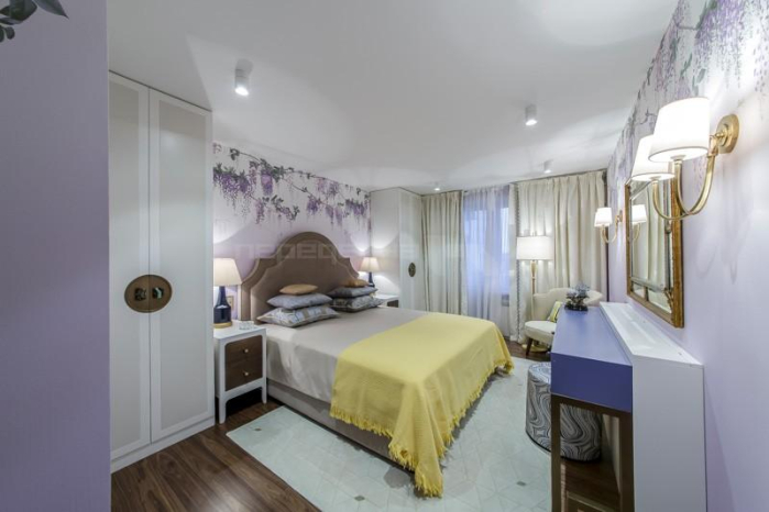 Интерьер спальни представляет собой компромисс между романтикой и современными взглядами на стиль и тенденции. Чистые классические и спокойные решения прекрасно сочетаются с неожиданными находками и деталями комнаты.