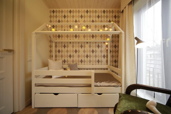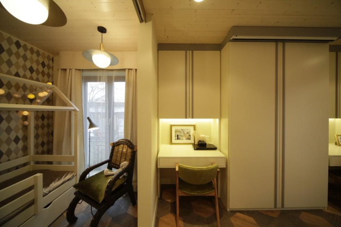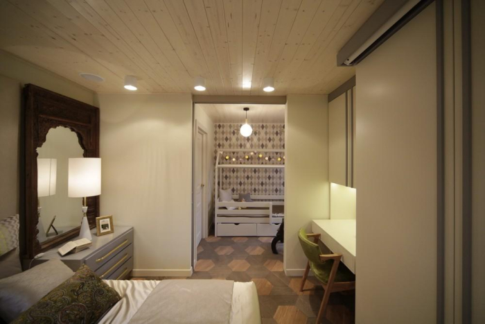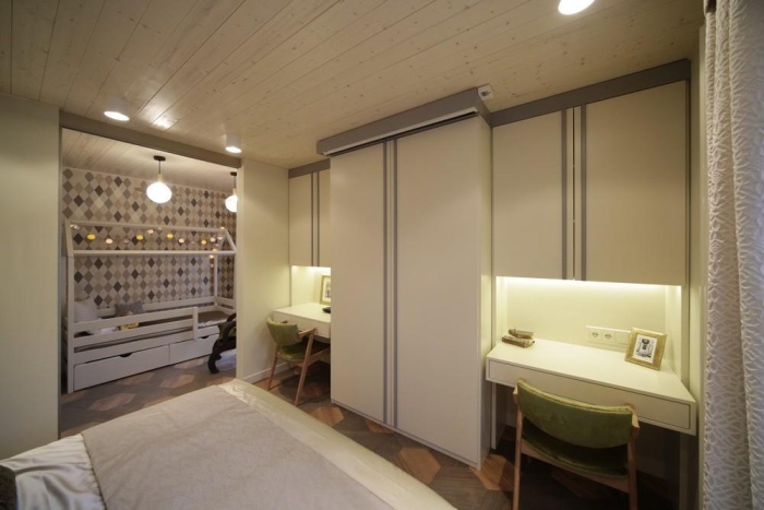 Дизайнеры Инна Теджоева и Зина Броян соединили в одной концепции спальню для взрослых и детскую. Текстильный декор включает более десятка тканей Espocada.