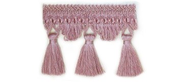 Бахрома с кисточками на широкой тесьме из окрашенных нитей, вес изделия - 120 г/м, упаковка по 25 м на картон