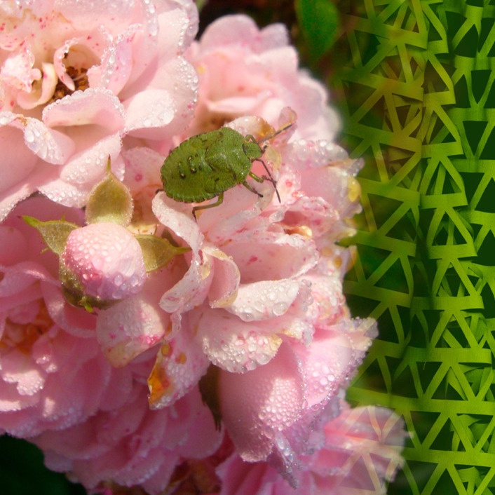 Коллекцию открывают два невесомых и воздушных образа, выполненных на тончайшей органзе с печатью и травлением — городские башни и изящные цветы. Плотный жаккард с каплевидным рисунком продолжает визуальный ряд. Его завершают сетка с лазерной резкой и несколько видов ткани с актуальной в любые времена полоской. Дизайны преломляются через призму активного красного, зеленого и желтого цветов.