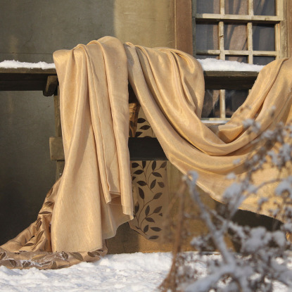 Модные растительные ноты выразились в плотном бархате с тиснением и двух видах органзы. Нежность и безупречность коллекции подчеркивается невероятной по красоте органзой с аппликацией и вышивкой. Тема фактур деликатно подается через жатый бархат с крешированием и тонкое тюлевое полотно с металлизированной нитью.