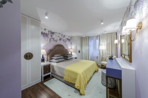 В интерьере спальни удивительным образом пришли в равновесие нежность, романтика и современные тенденции в декоре. Изысканные классические мотивы и продуманные решения гармонируют с неожиданными приемами декорирования и активными деталями.