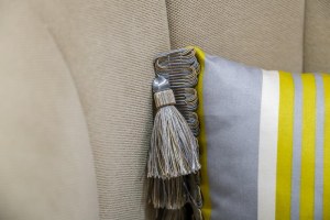 Плотный двусторонний жаккардовый сатин из коллекции «Avance» в золотисто-бежевой гамме стал отличным выбором для покрывала на большую кровать со стильным декоративным оформлением. Мягкая и приятная ткань подчеркивает нежность и гармонию, которая видна в каждой детали интерьера. Благодаря этой ткани в комнате появилось приятное и теплое пятно цвета, которое играет на контрасте с цветом стен.