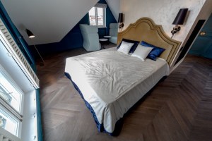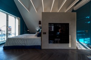 Современный дизайн с 3D-эффектом создает впечатляющую оптическую иллюзию и погружает в объемное геометрическое пространство. Прохладная цветовая гамма излучает уверенность и позволяет обрести равновесие. Римские шторы дают возможность изменять пространство с помощью более интересного текстиля. В данном случае трехмерный дизайн набирает полную силу в раскрытой шторе. Он играет роль магнита, который приковывает взгляд благодаря стильному и современному рисунку. Мягкие и плавные складки шторы добавляют приятную эстетическую составляющую, а легкие отсветы ткани создают деликатную игру света и тени.
