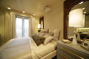 Подкладка из классического сатина «Duos» в молочной гамме выглядит тепло и по-домашнему. Приятная бархатистая фактура хорошо сочетается с небольшой выработкой на покрывале. Обе ткани подчеркивают безукоризненный вкус хозяев дома.
