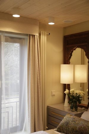 Детскую украсили шторы с бандо и тюль из тех же тканей, что и во взрослой спальне. Так мы создали единое пространство, которое объединяет обе комнаты. Спокойная молочная гамма гармонирует и с мебелью, и с другими деталями интерьера.