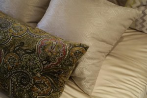 Подушка из сатина «Celebrity» в светлой кремовой тональности гармонирует с покрывалом во взрослой спальне, сшитом из точно такой же ткани.