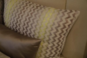 Из ткани «La Vita» с геометрическим рисунком получились чудесные декоративные подушки кофейного оттенка. Они прекрасно сочетаются как с пледом, так и с другими элементами текстильного декора.