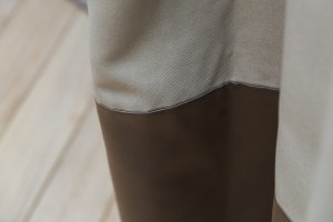 Ткань из коллекции «Twilight» с необычной фактурой. Она называется жатка. Благодаря специальной выработке такая ткань похожа на грубоватую мешковину. Она объемная и выглядит очень естественно, даже немного по-бунтарски.