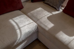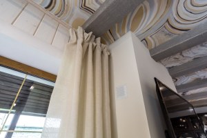 Дверной проем декорирован натуральной тканью «La Manche» из смеси льна и хлопка. Сам рисунок и фактура стилизованы под домотканое полотно ручной работы. Каждая деталь и элемент проработаны до мельчайших деталей. Дизайн в растительной тематике подчеркивает особое отношение к натуральным материалам. Немецкое качество нитей, плетения и печати можно оценить с первого же прикосновения. Мягкое и нежное полотно в приятной и согревающей гамме добавляет в интерьер ощущение лета и солнца.