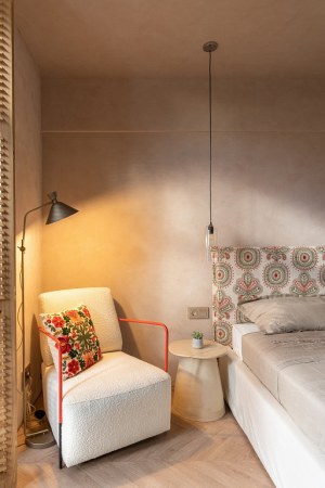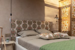 В новом выпуске «Квартирного вопроса» дизайнеры Чувелева Кира и Кузнецова Анна оформляли спальню для молодой пары. Каркас кровати было решено обтянуть имитирующим натуральную ткань износостойким молочным сатином из каталога Felice, который продолжает актуальную тему продуманных эко-интерьеров. Для изголовья кровати и декоративных подушек была выбрана ткань из авторской коллекции Cape Town от Venesto. Хлопковая вышивка на рогожке удачно подчеркнула этнические мотивы в интерьере.