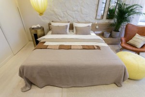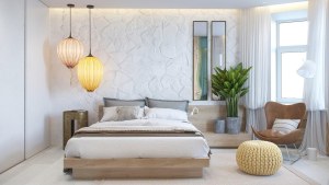 Легкое превращение обычной спальни в бразильский домик у моря с водопадом, дубовыми панелями и стеклянной вставкой.