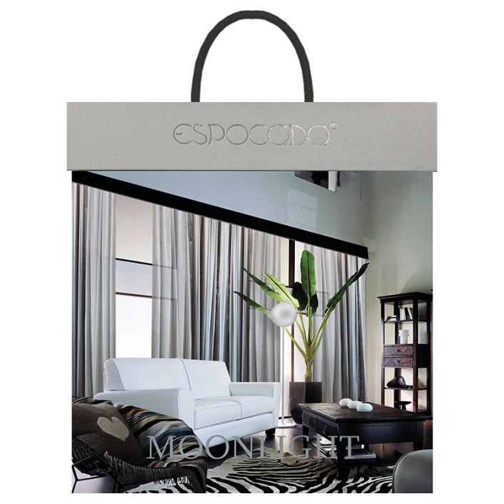 Лаконичные образы и ткани в стиле минимализм станут изящным украшением интерьера со вкусом и достоинством. Именно такая подборка декоративного текстиля получила название Espocada «Moonlight». Теплые оттенки с примесью кремовых, сиреневых, золотистых и сероватых тонов напоминают свет полной луны, завораживающий и таинственный. В коллекции рядом идут несколько основных дизайнов, среди которых выделяются муаровые мотивы на органзе и полоска в необычной технике плетения. Их поддерживают однотонные жаккарды и тюлевые компаньоны.